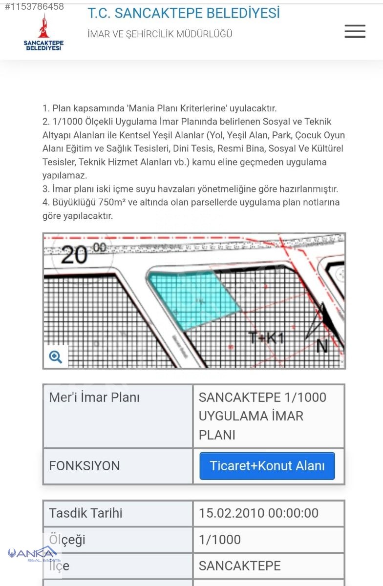 Anka Real Estate / Sancaktepe Yenidoğan Satılık Arsa